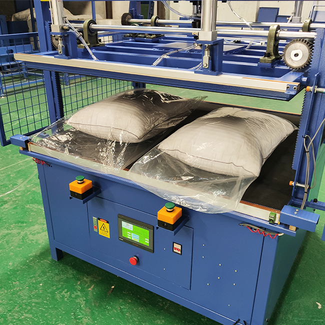 يتم استخدام آلة التعبئة والتغليف بالضغط الفراغي للوسائد لضغط وختم تغليف الوسائد، الوسائد، وسائد الظهر، الألحفة، الألحفة السفلية، لحاف الفضاء وغيرها من العناصر، وبالتالي تقليل تكاليف التعبئة والتغليف، وتوفير مساحة التخزين وتقليل تكاليف النقل.